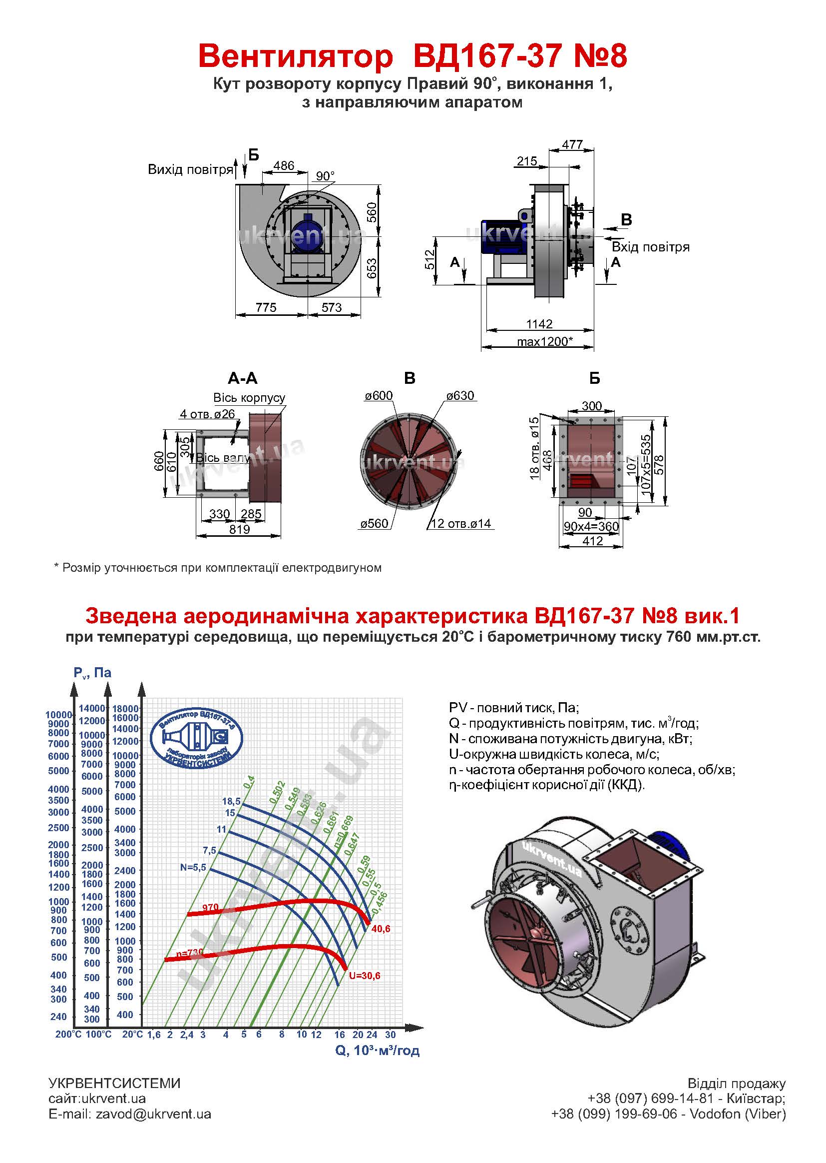 Загальні відомості про вентилятор ВД167-37-8 (ВД167-378, ВД167-37№8, ВД167-37 8,димосос ВД167-37-8 ) з двигуном 5,5 кВт 750 об/хв: