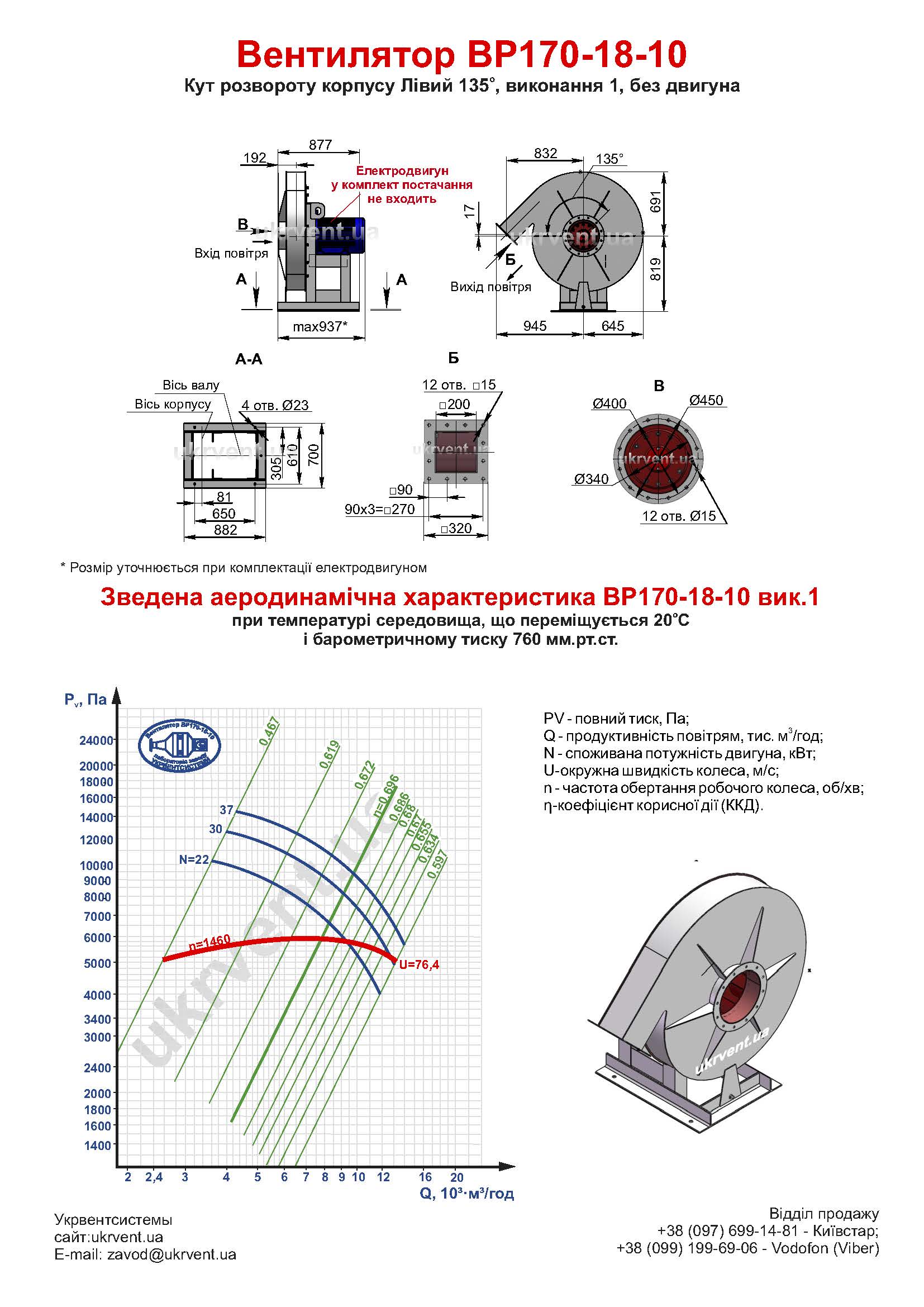Умови експлуатації відцентрового вентилятора високого тиску ВР170-18 №10 1 виконання з двигуном 22кВт 1500об/хв