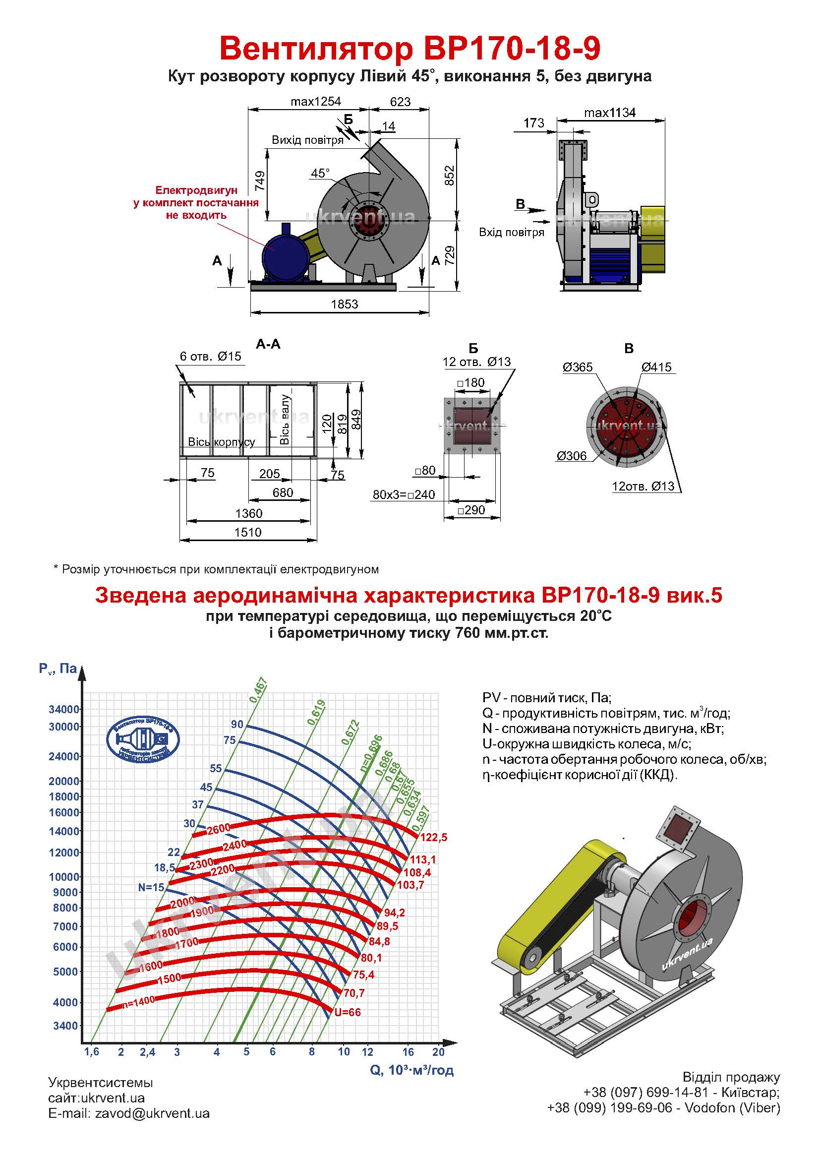 Умови експлуатації відцентрового вентилятора високого тиску ВР170-18 №9 5 виконання з двигуном 18,5кВт 1500об/хв