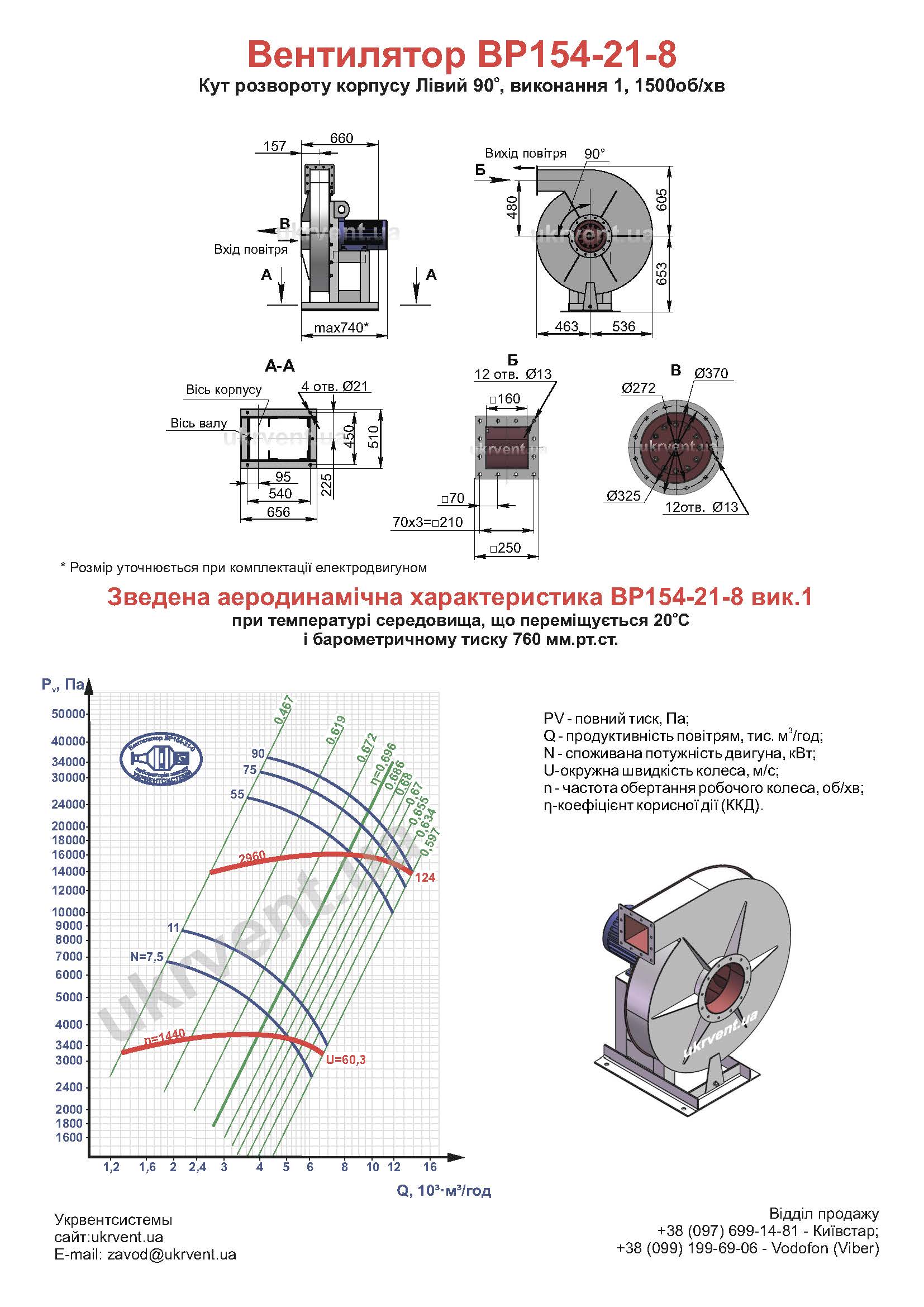 Основне призначення радіального вентилятора високого тиску ВР154-21 №8 1 виконання з двигуном 7,5кВт 1500об/хв