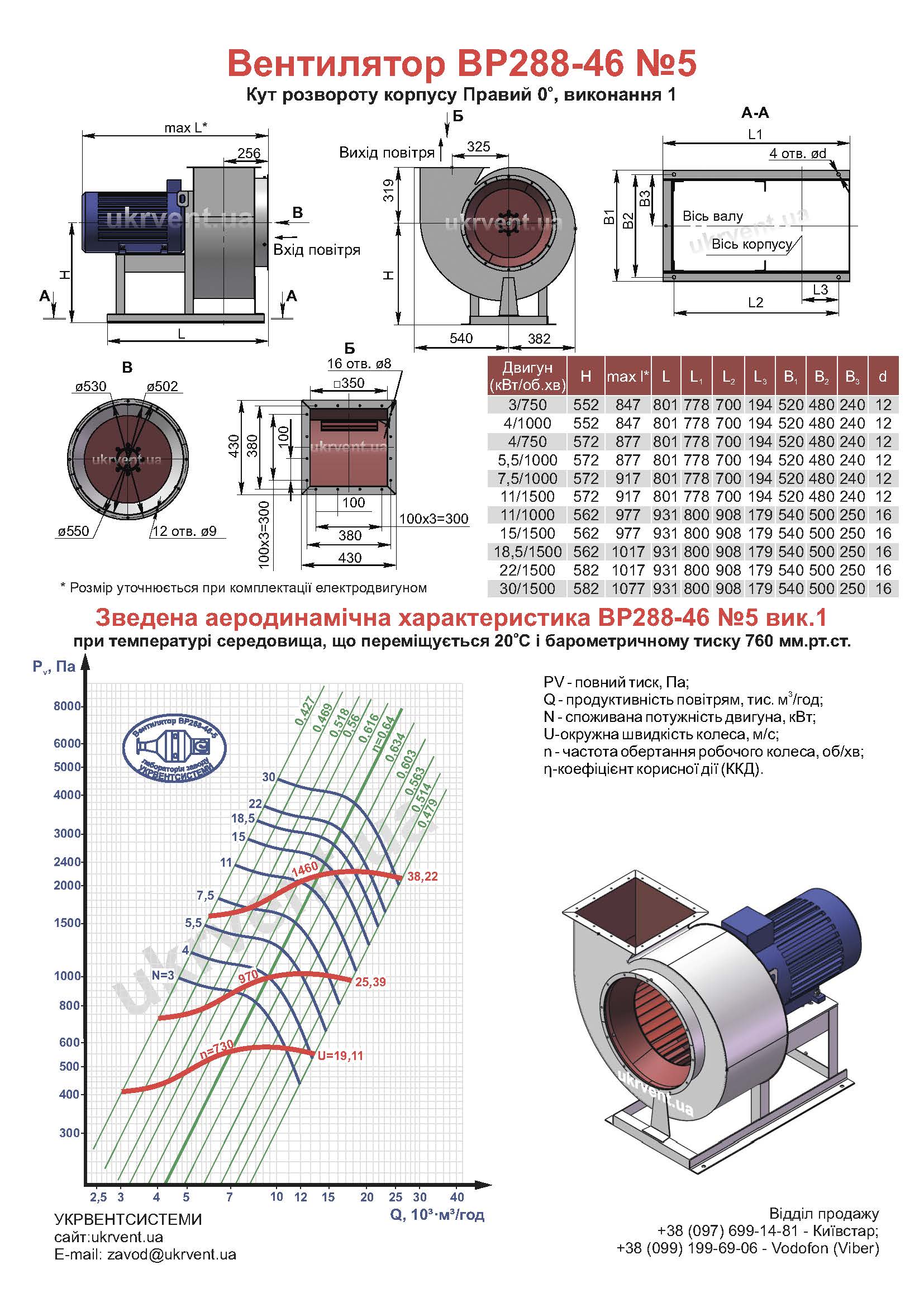 Умови експлуатації відцентрованого вентилятора середнього тиску ВР288-46-5 1 виконання з двигуном 3кВт 750об/хв
